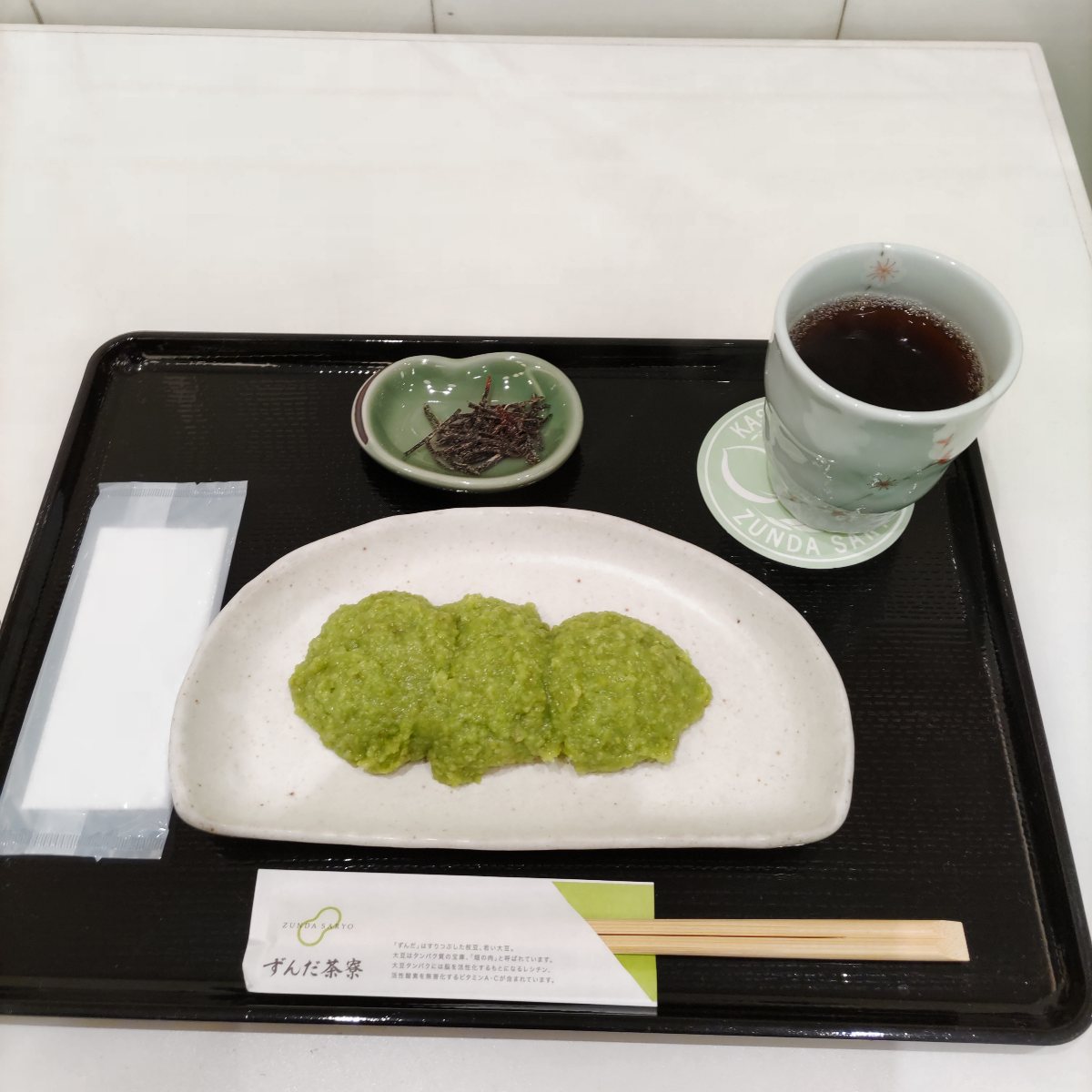 びっくりするぐらい黒豆茶が濃い。そしておいしい。ずんだも濃い。もちはやわらかもちもち。おいしかったな~。