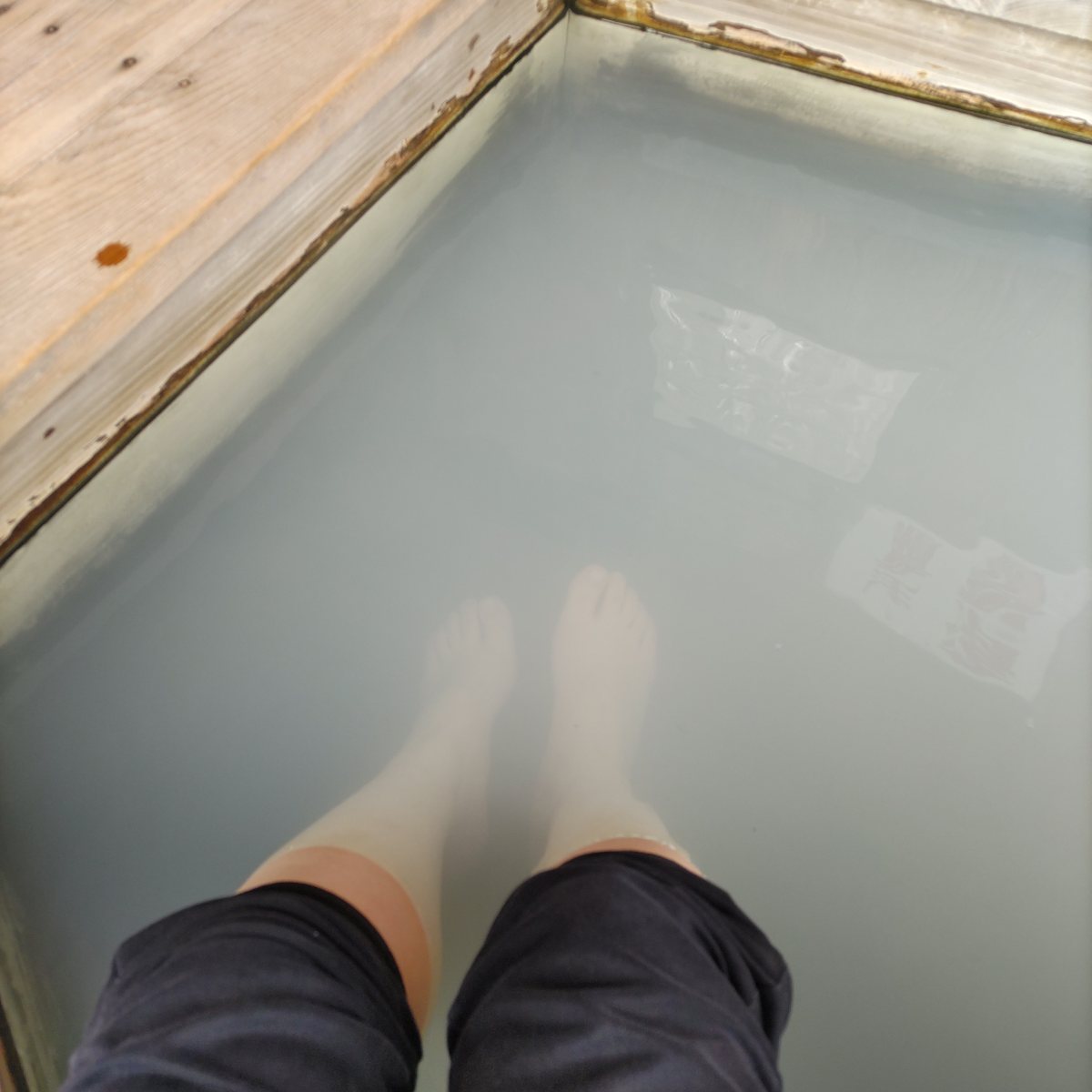 いのゆとが入ってたのとは対岸にある足湯。硫黄の香りがすてき。乳白色でつるつるのお湯。なお滅茶苦茶ドジなのでズボン裾を湯船に浸けてしまった。帰りの電車乗ってるうちに乾いたけど。
