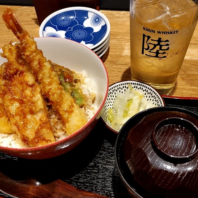 ここから色々食べるつもりだったのでミニ天丼。そしてハイボール。蓮根がおいしかった。