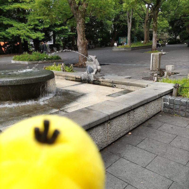 御覧コダックちゃん、かえるがみずでっぽうしてるよ