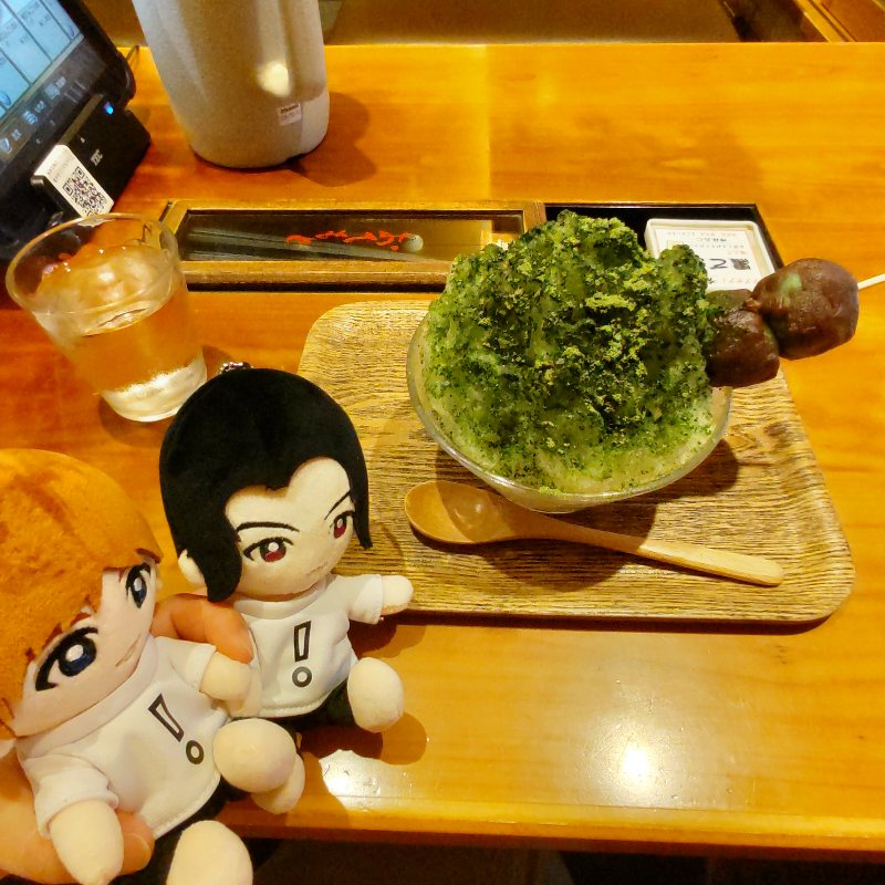 そしてお目当て。厄落としだんご。本当はみたらしと草だんごのセットのやつを食べるべきだったけどあまりの暑さにかき氷に。だんごついててお得!座った席が多分有岡くんが座った席っぽいと食後に気付くなどした。お店の人に聞けば良かったんだろうけど汗だくお化けだしコミュ障だしで断念。